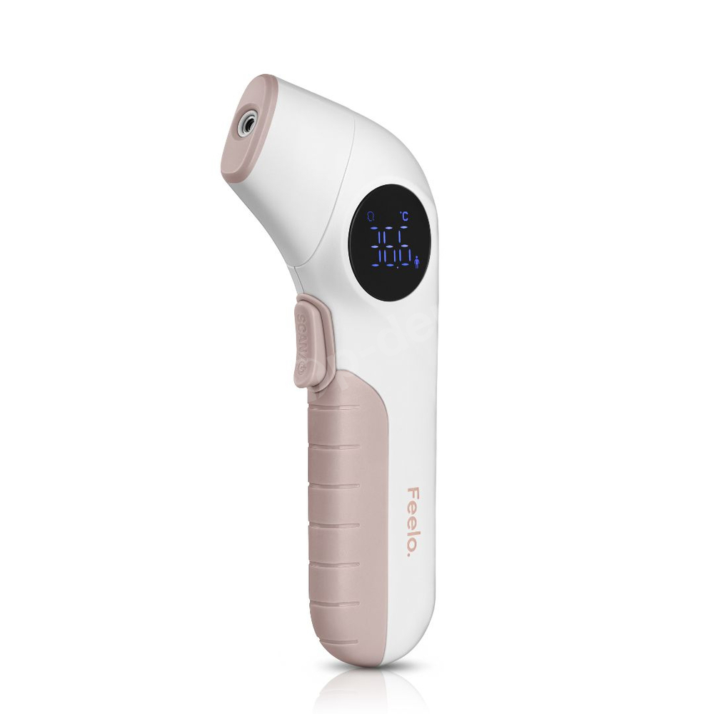 - Termometr bezdotykowy Feelo Family Care to wyrób medyczny. Posiada trzy tryby pomiaru: z czoła, ucha i tryb mierzenie temperatury obiektów (mleko, woda w wanience). Zapewnia pomiar w 1 sekundę. Wyposażony w czytelny wyświetlacz i alarm gorączki.